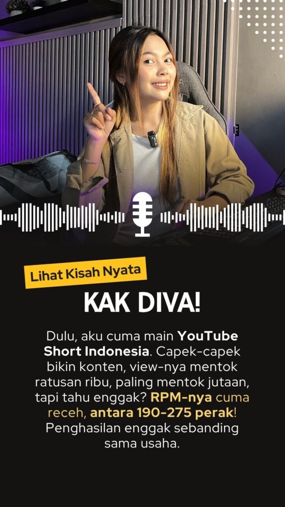 RPM luar negeri (sekitar Rp2.500 – Rp5.500) jauh lebih besar daripada RPM Indonesia. Itu artinya, dengan view yang sama, kamu bisa dapat cuan berkali-kali lipat lebih banyak!