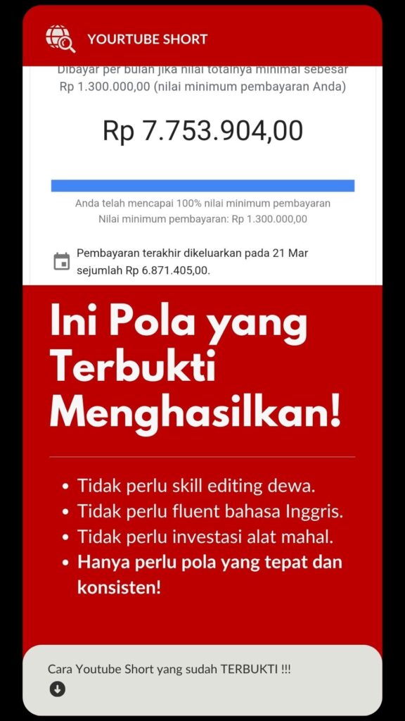 Ambil tempatmu sekarang dan mulai panen dolar dari YouTube Short!
